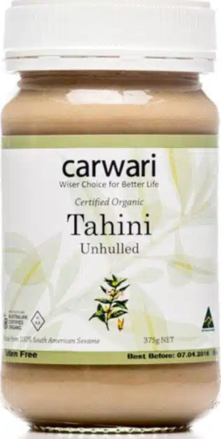 Carwari Organic Unhulled Tahini is slowly stone-milled and tastes stronger with a hint of bitter. As sesame seeds are still unhulled, the colour is a bit browner than hulled tahini.